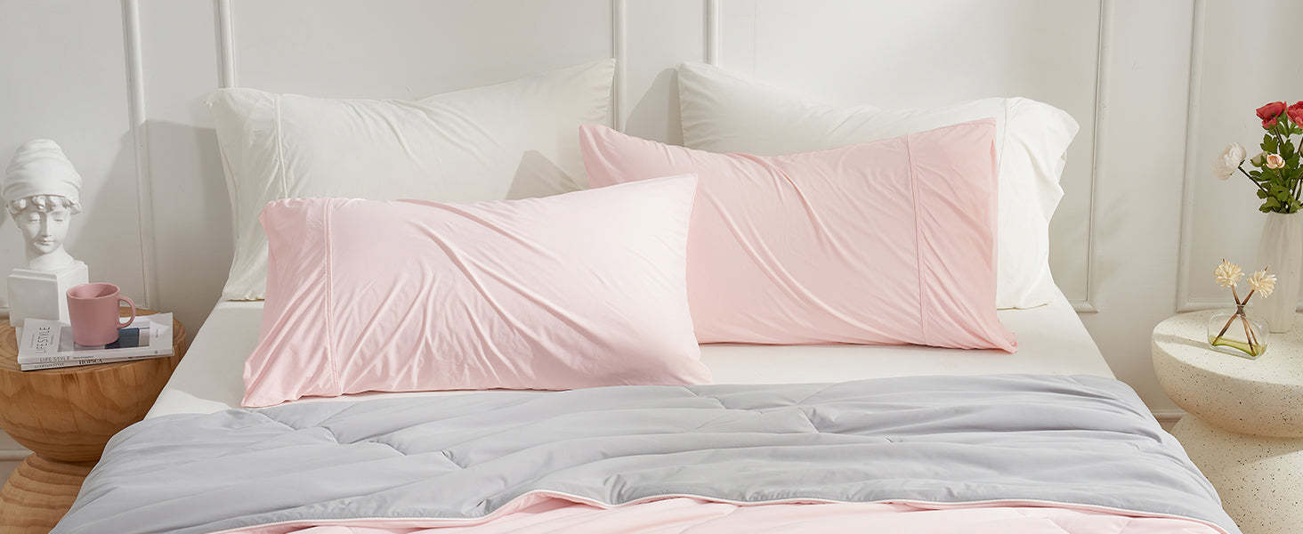 Crafted with a tight-weave, smooth cooling fiber, these pillowcases are naturally anti-static and incredibly gentle on your skin and hair. The silky-soft surface allows your face and hair to glide effortlessly, helping reduce friction that causes wrinkles, hair breakage, and dryness — promoting better skin and hair health while you sleep.
