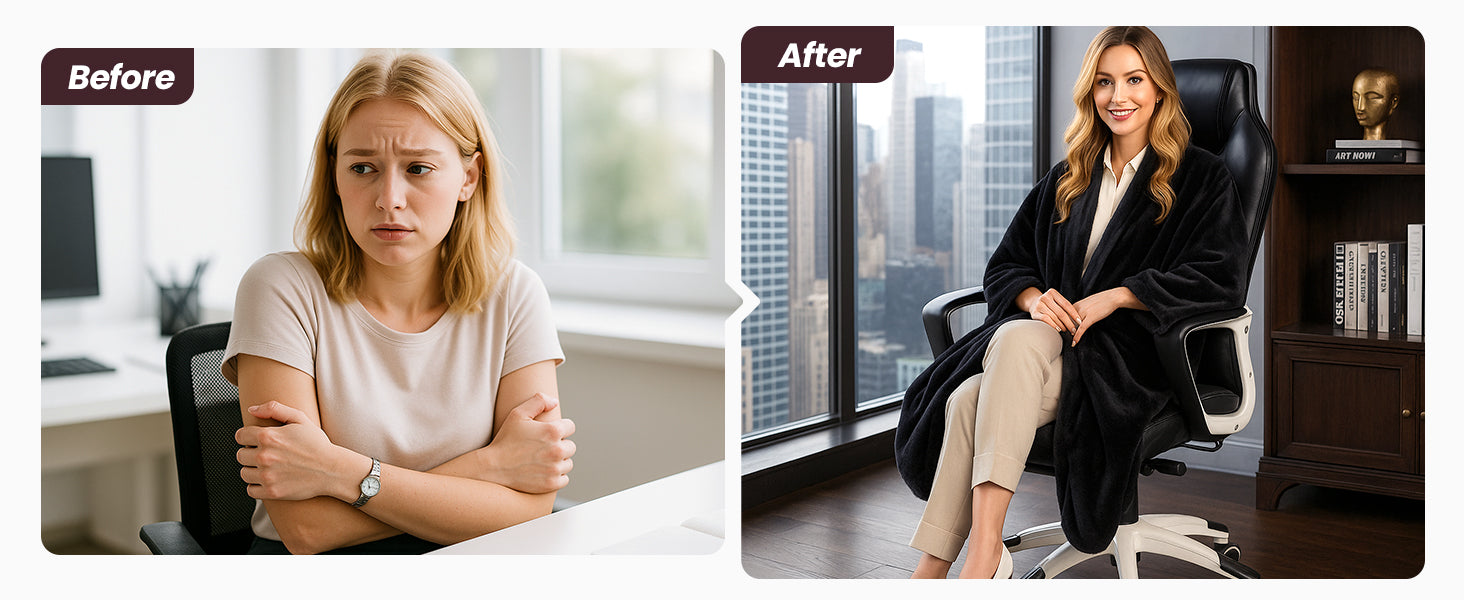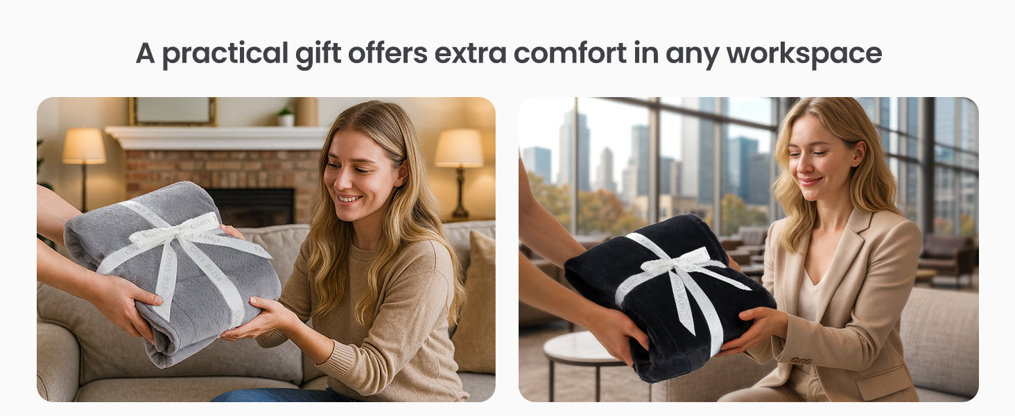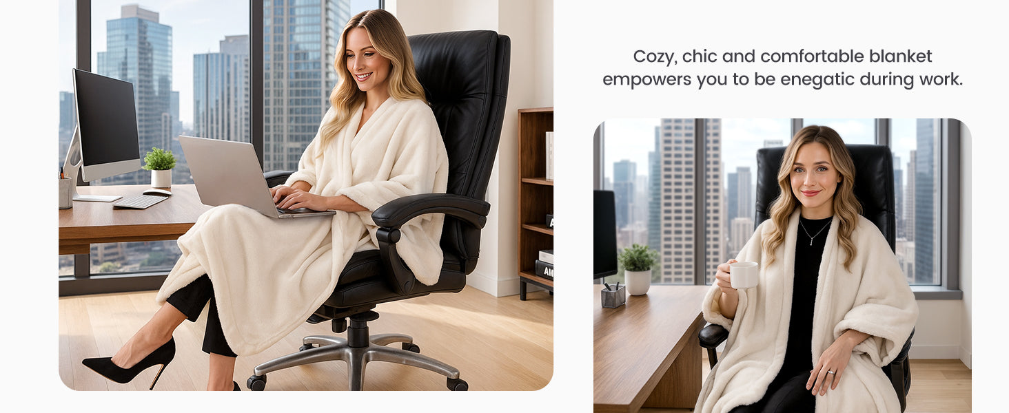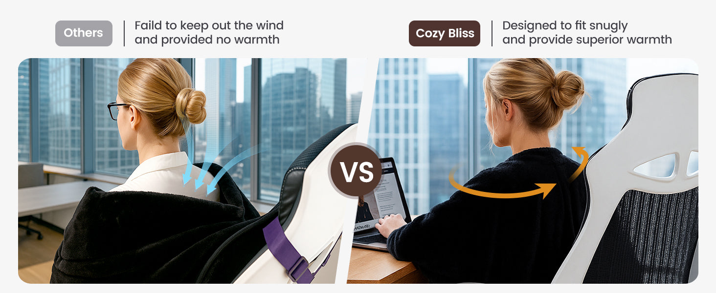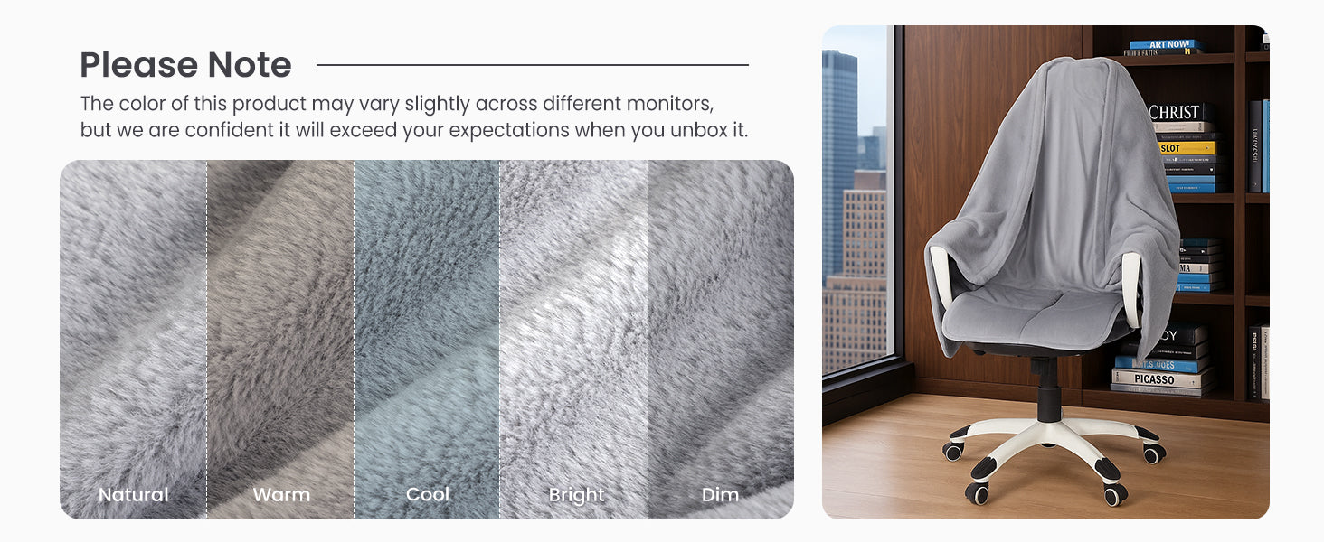 Our desk chair blanket uses a One Size Fits All design that fits most standard office chairs—from basic task chairs to mid-back executive styles.