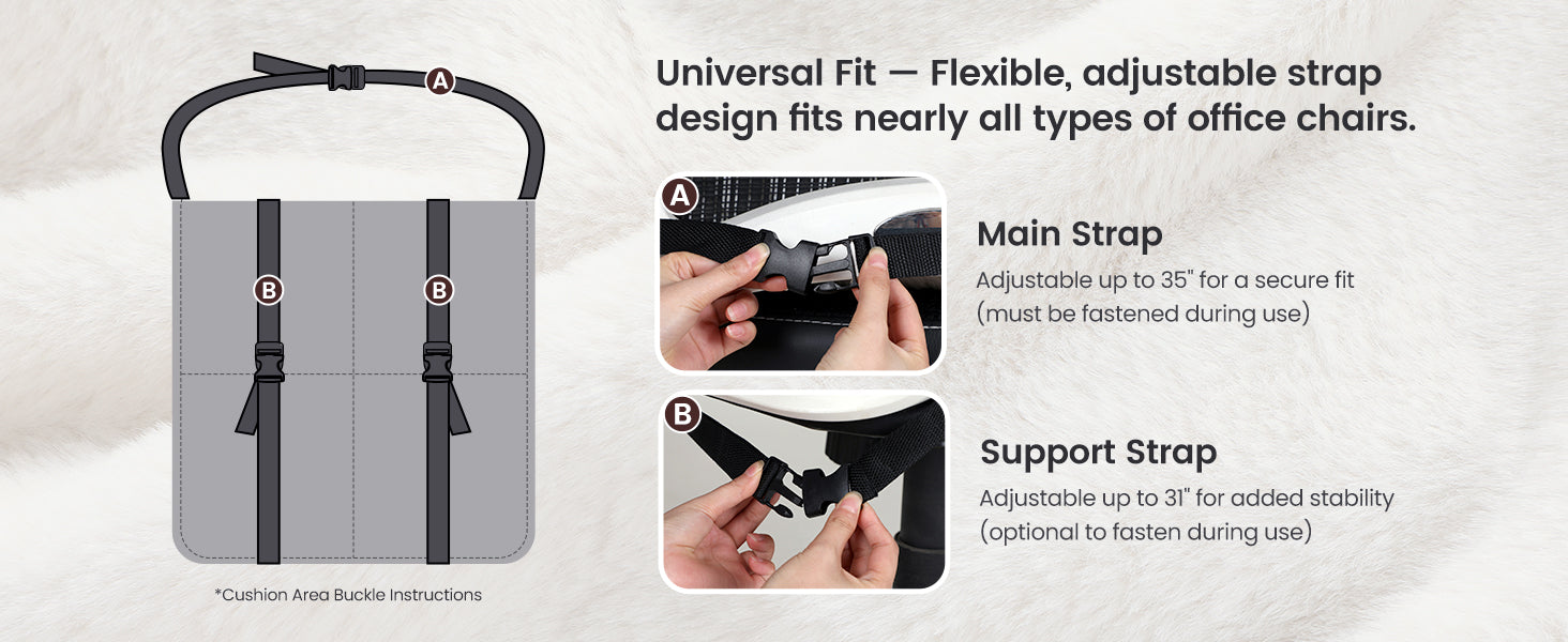 Stays firmly in place with adjustable straps. Add comfort while keeping the blanket perfectly postioned.
