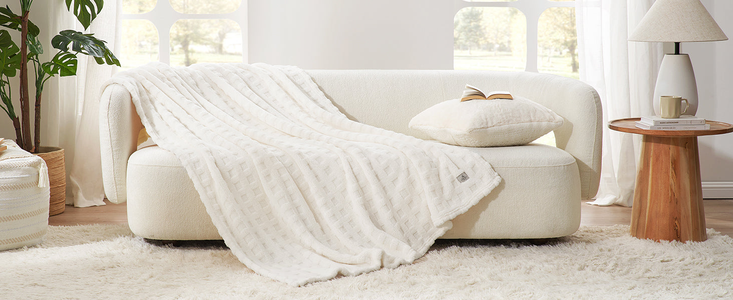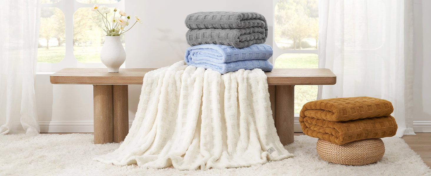 Featuring a tactile 3D waffle texture, this blanket combines visual depth with cozy comfort. The raised grid pattern creates a modern look while enhancing softness and warmth.