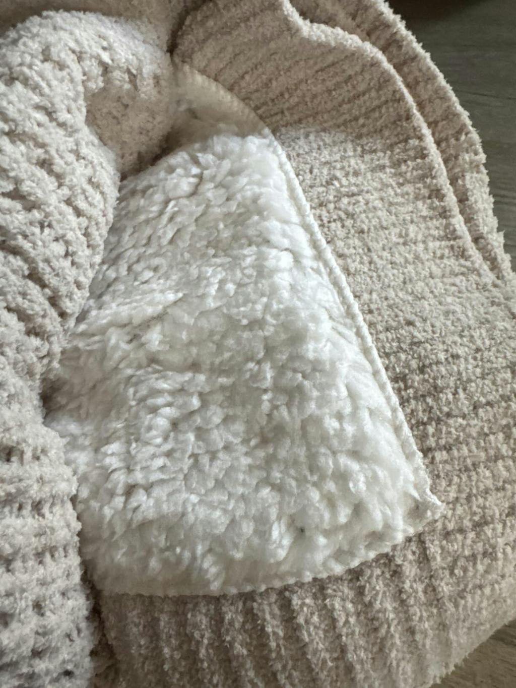 Crafted with chenille knit on one side and 100% polyester sherpa on the reverse (240gsm), this cable knit sherpa throw blanket provides a soft hand feel and durability. It's not only warm and cozy but also easy to maintain. For best results, wash in cold water with a gentle detergent and tumble dry on low heat.