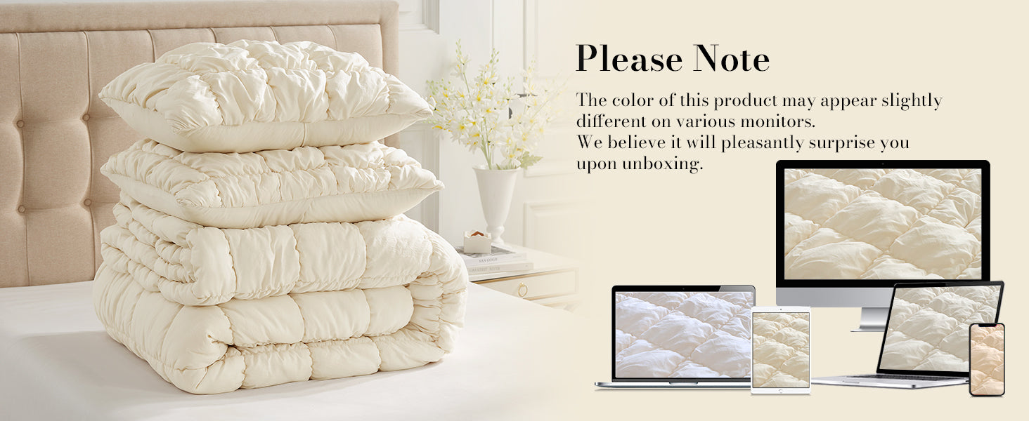 - King-size: 1 King-size comforter (106" × 90") + 2 matching pillowcases (20" ×36").