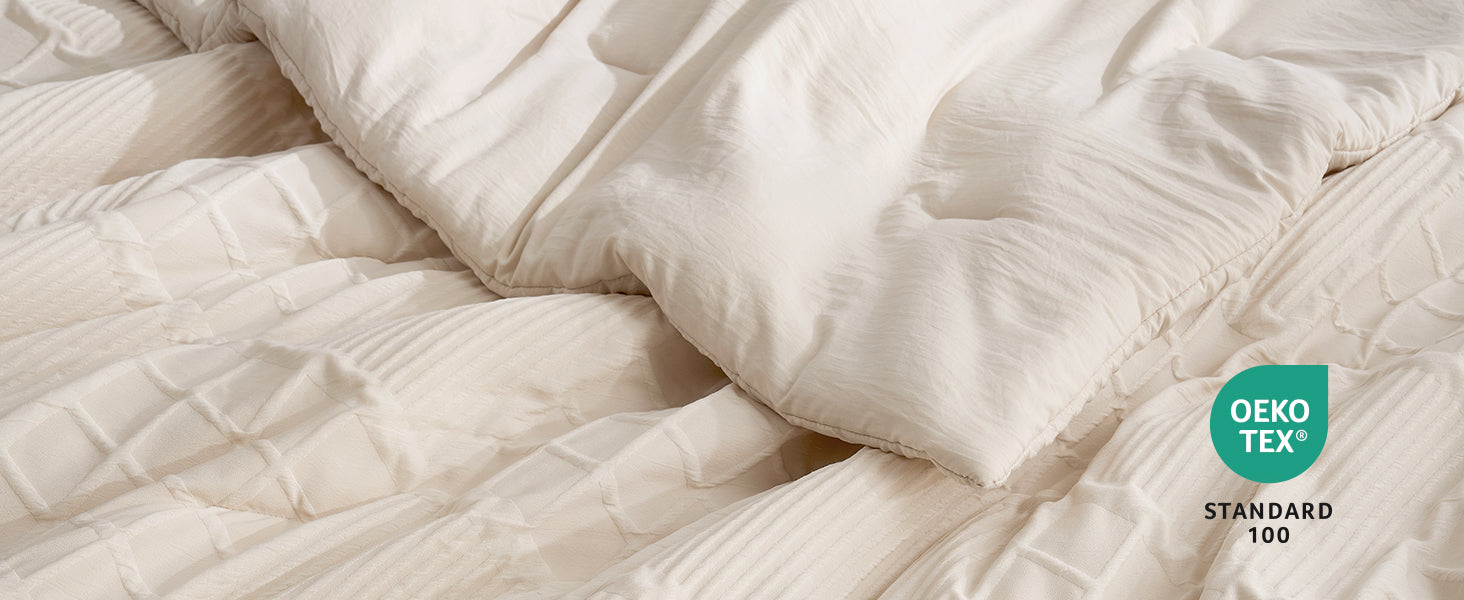 Made from 140gsm washed brushed microfiber, this comforter set feels luxuriously soft and gentle, even on sensitive skin. Certified by OEKO-TEX Standard 100, it’s free from harmful substances—safe for families, babies, and those with delicate skin. Comfort you can trust, night after night.