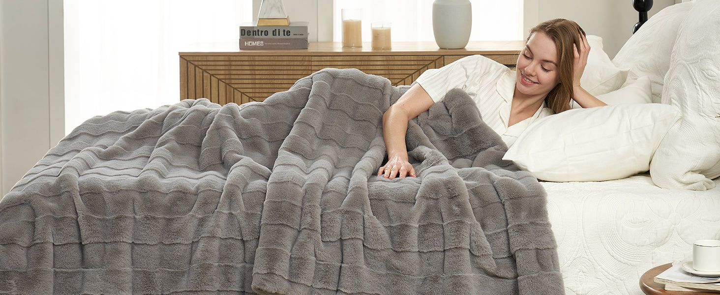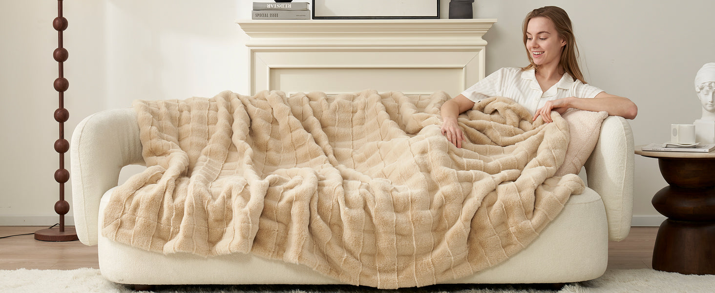 Indulge in luxurious comfort with this faux rabbit fur throw blanket, designed with a 450GSM silky-soft front that delivers a buttery smooth feel and elegant appearance. The 230GSM milk velvet reverse adds a layer of breathable warmth, offering cozy insulation without excess bulk—perfect for year-round use in any room.