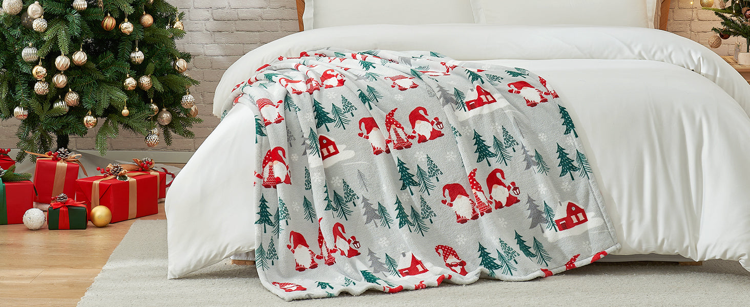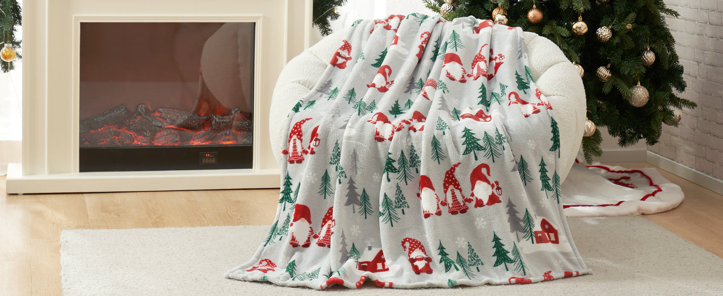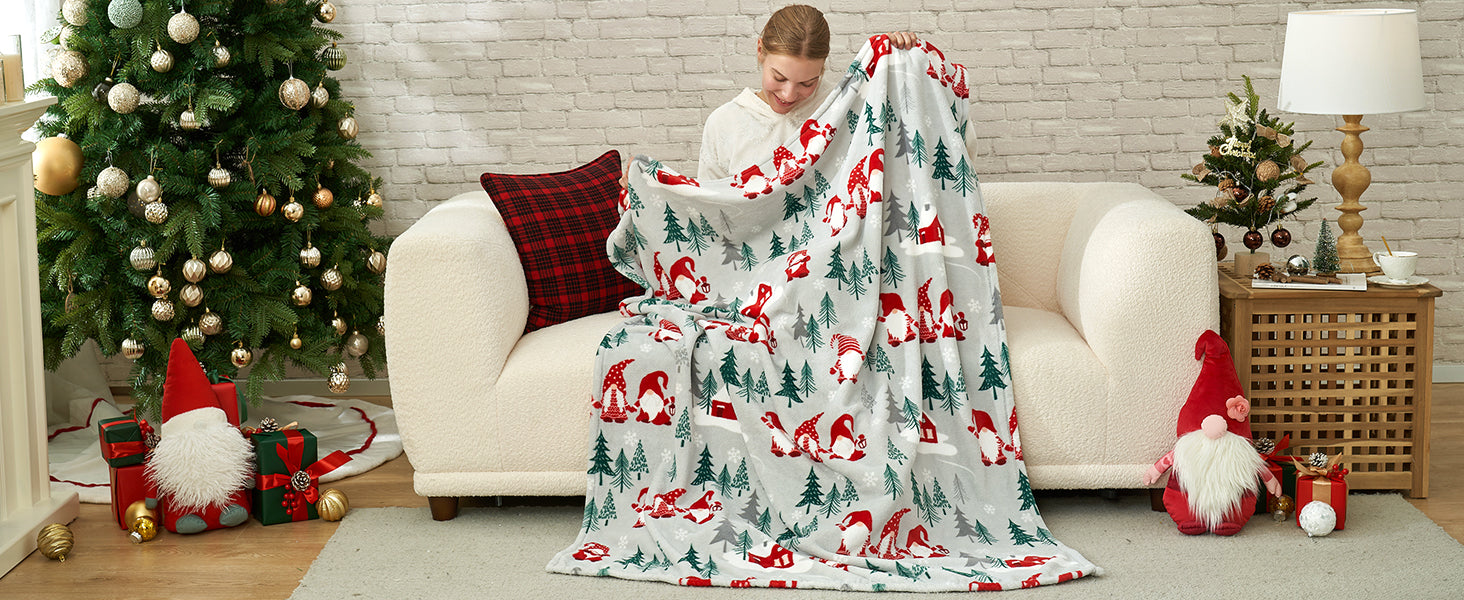 Adorned with playful holiday gnomes, this ultra-soft MilkyPlush piece adds instant seasonal charm as a cozy couch drape, bed accent, or festive wall hanging. Transform any space into a warm winter wonderland with this must-have holiday decor.