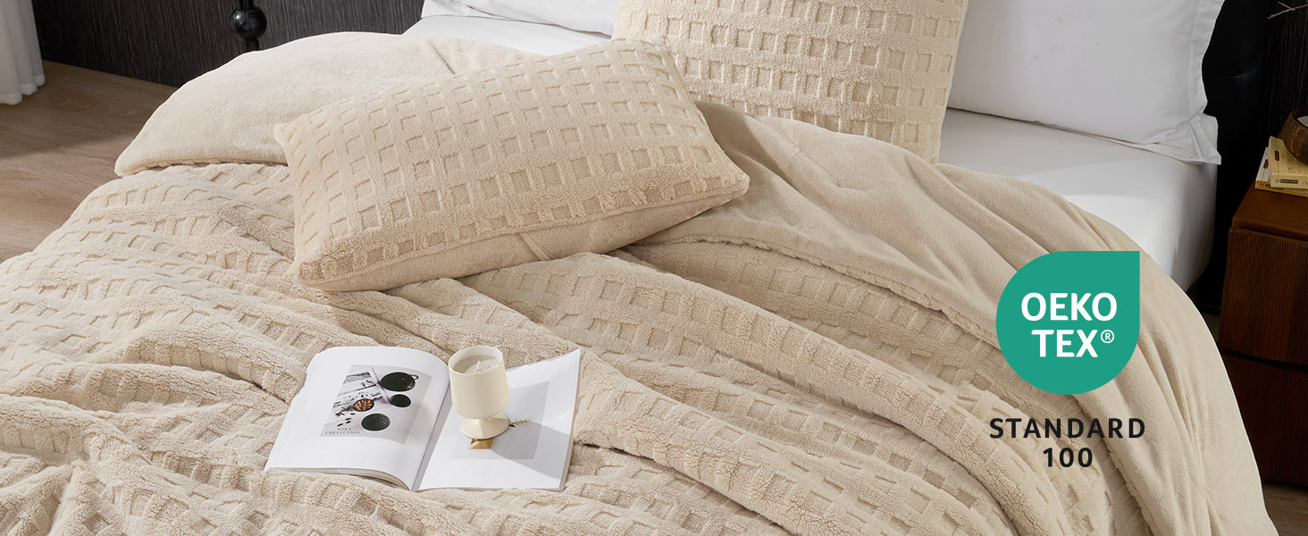 Made with Triple-Anti Fleece (anti-fading/shedding/static) + reinforced dot stitching to prevent clumping. Stays thick and fluffy even after washing. OEKO-TEX Certified for safe, chemical-free use.