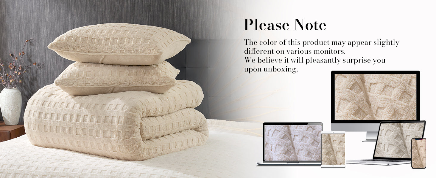 Features unique jacquard weaving and a soft waffle texture for luxurious warmth. Complete reversible bedding set, ideal for cold weather.