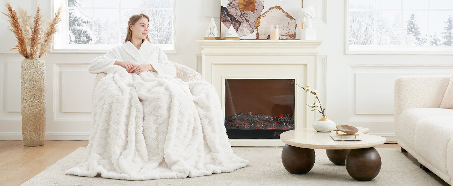 This blanket is crafted with 530GSM milky faux rabbit fur and 230GSM milky fleece, ensuring a soft and luxurious feel that rivals real fur.