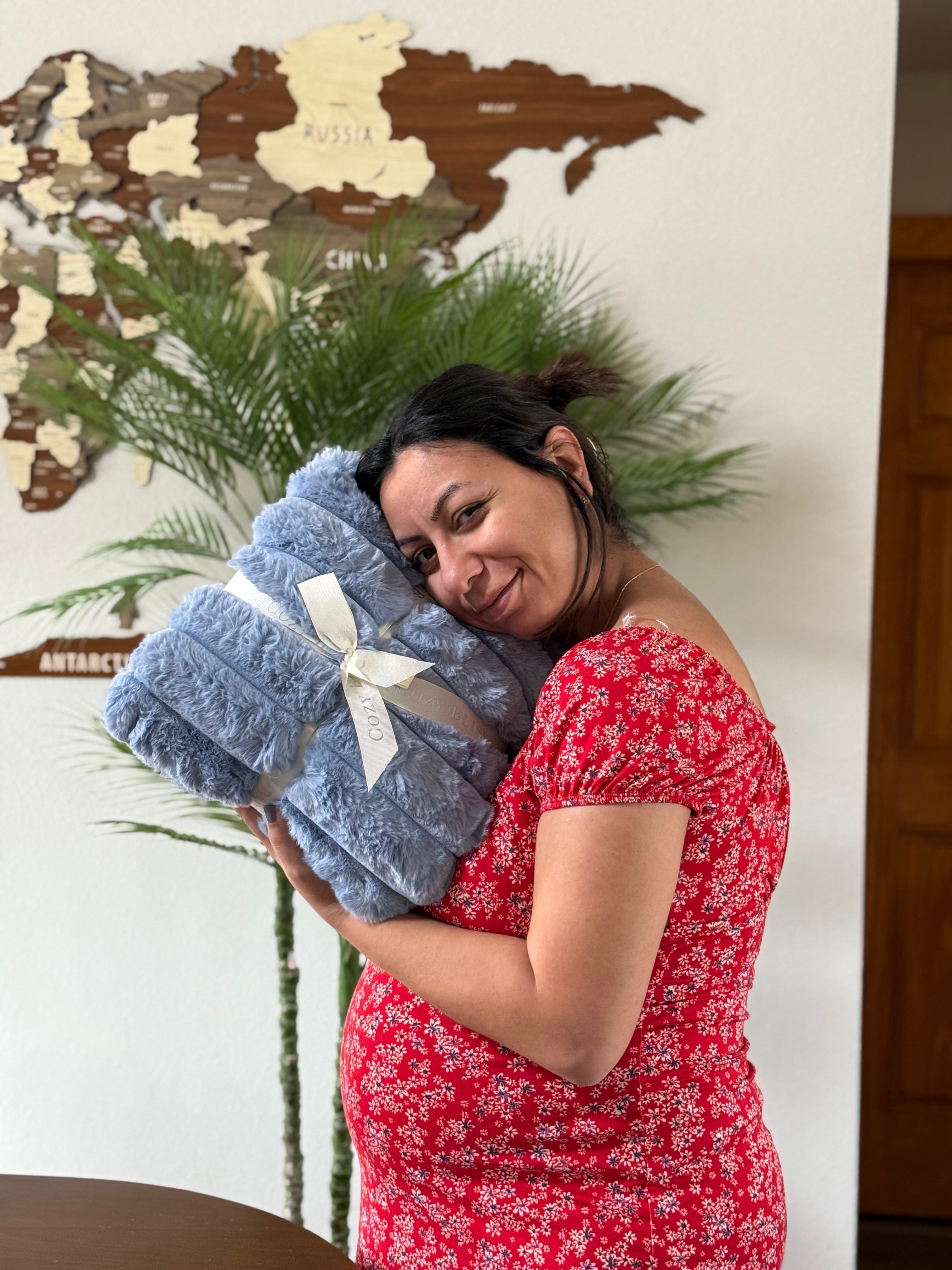 I bought this as a gift for my daughter. I have 2 cozy bliss blankets just like this one, in sage and blue and I absolutely love them. They are so plush and cozy, which is a must have for the days when I want to lounge in a luxurious cloud of softness.