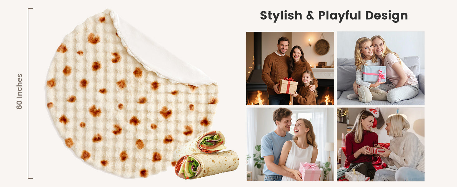 Unique bubble-style burrito pattern adds a fun, modern twist to your cozy essentials.