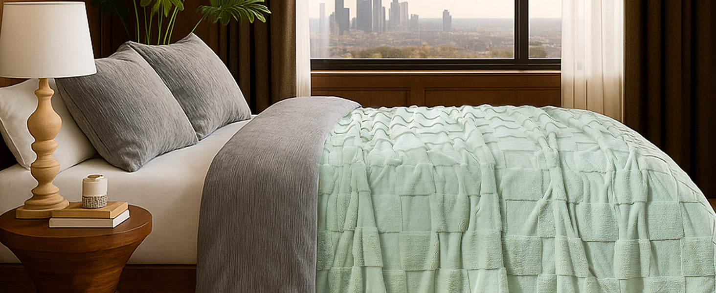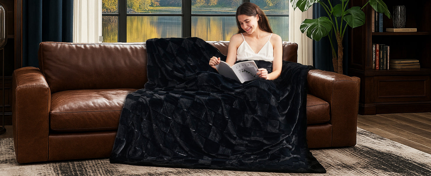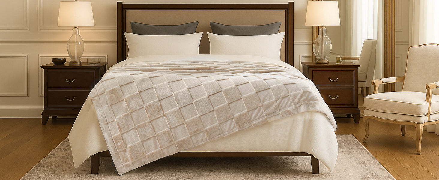 Featuring plush faux fur on one side and smooth milky fleece on the other, it offers double the softness and warmth. The bold 3D checkerboard pattern creates a modern tactile experience. Perfect for sofa snuggles, bedroom accents, or travel companion, this versatile blanket blends contemporary design with cozy functionality for any space.