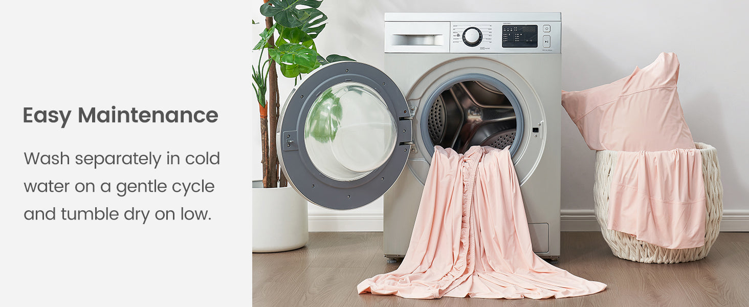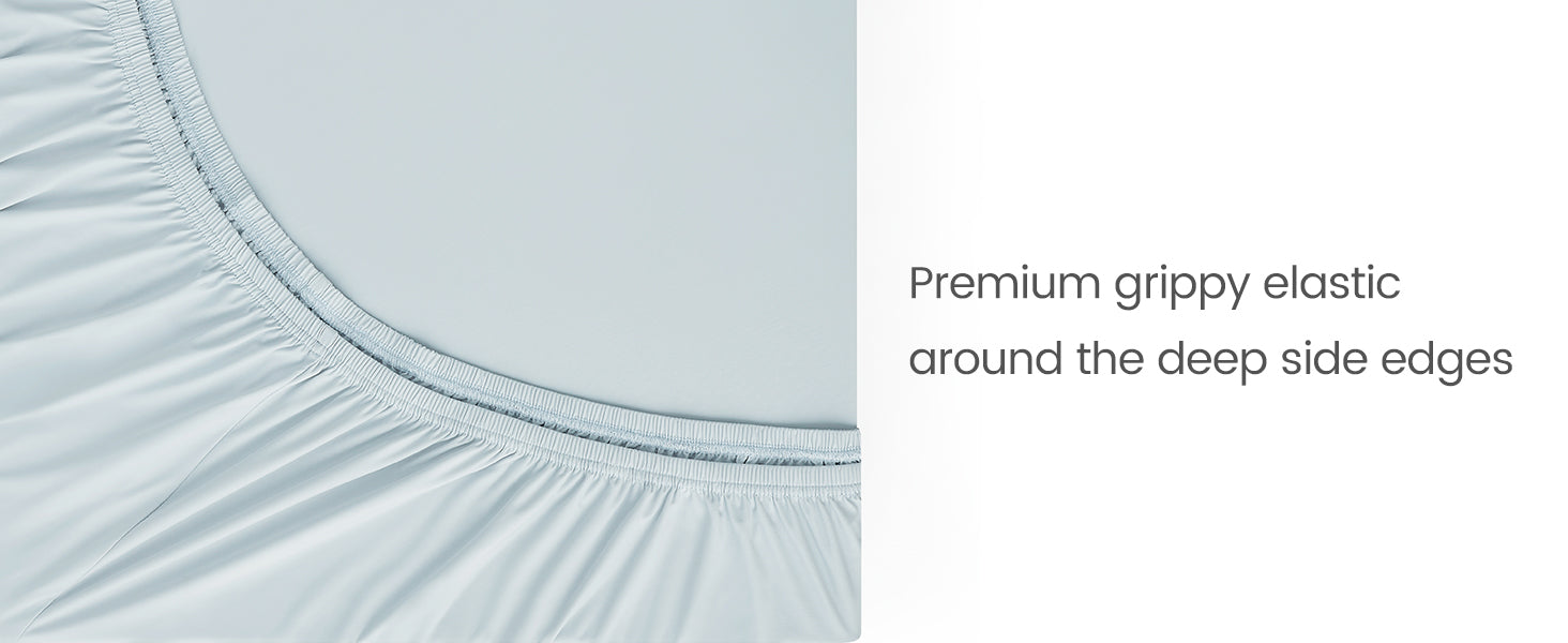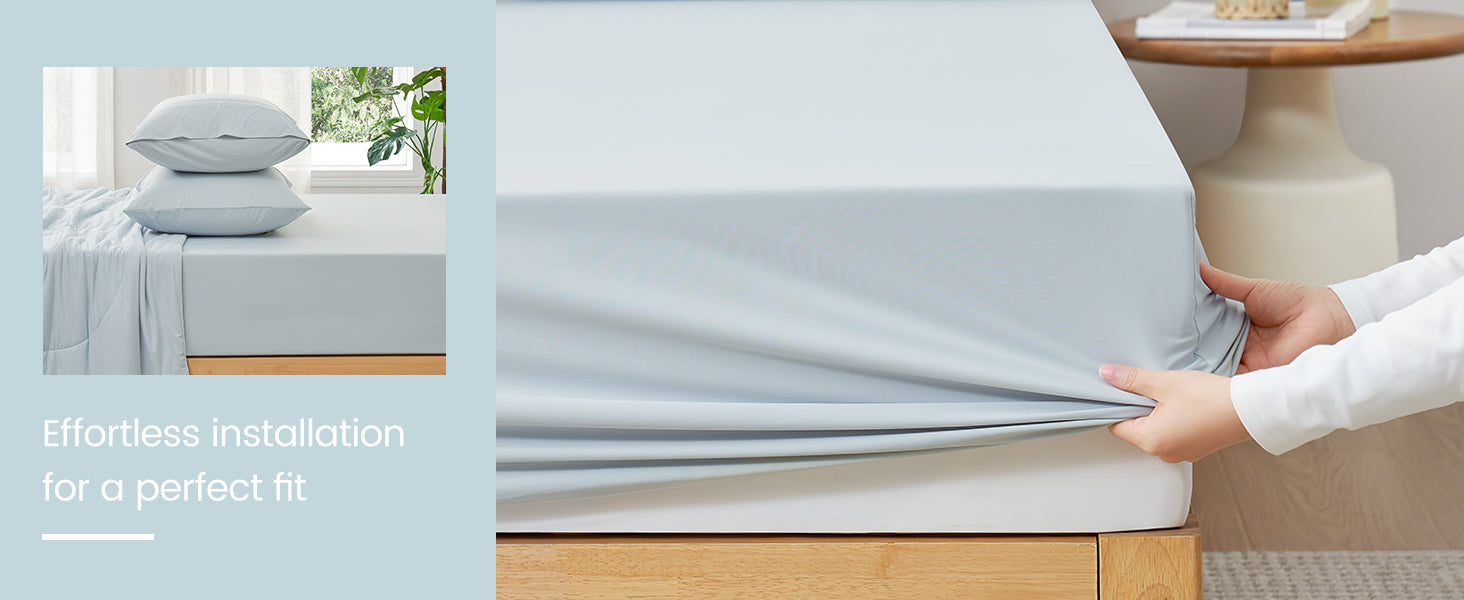 The fitted sheet wraps securely around your mattress with its full elastic edge, staying perfectly in place all night long. Made from smooth, breathable cooling fabric, this set keeps you comfortable while adding a touch of luxury to your bedroom.