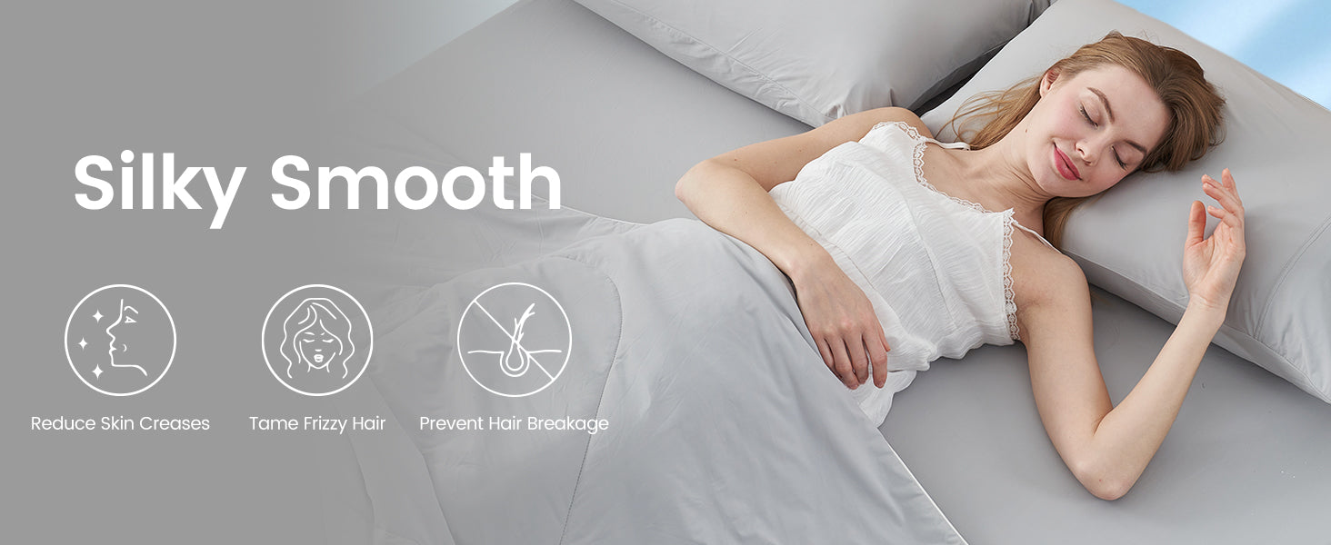 Made with an innovative blend of 90% Nylon and 10% Spandex with OEKO-TEX Standard 100 certified, these sheets are softer and smoother than silk. Designed to glide effortlessly across your skin, they're perfect for hot sleepers, those with night sweats, and anyone looking for hypoallergenic, skin-safe bedding that feels as good as it looks.