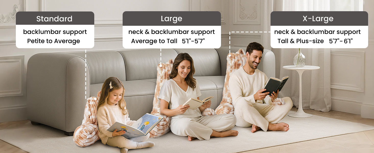 Available in three sizes—Standard, Large, and X-Large—to suit different body types and heights. Whether you're a teen in a dorm, an adult relaxing at home, or looking for a supportive gift, there’s a perfect fit for everyone.