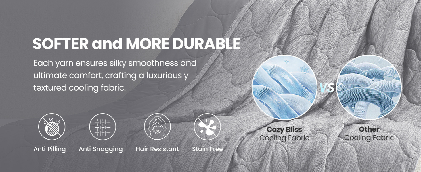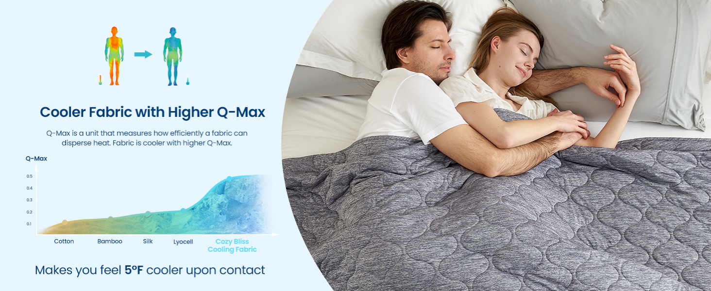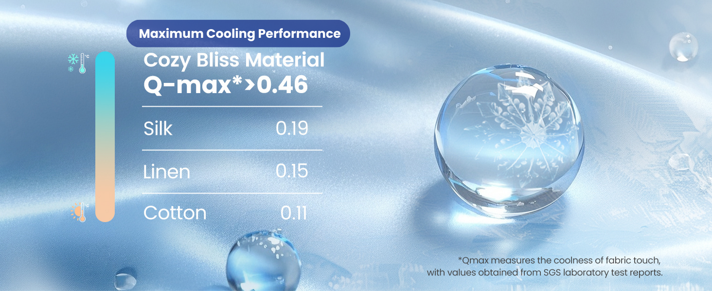 Beat the heat with Cozy Bliss's advanced Q-Max>0.46 Japanese Arc-Chill fabric. Designed with densely woven cooling fibers on both sides, this comforter instantly draws heat away from your skin, lowering surface temperature by 2–5°F. One side delivers a strong cooling effect for extra-hot nights, while the other offers a lighter, breathable cool—perfect for year-round use.