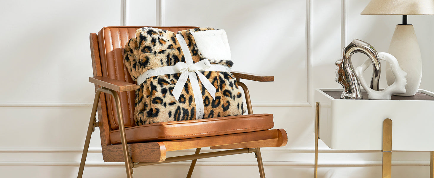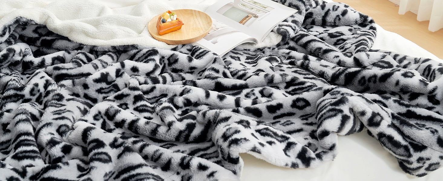 Leopard Print Faux Fur Throw Blanket