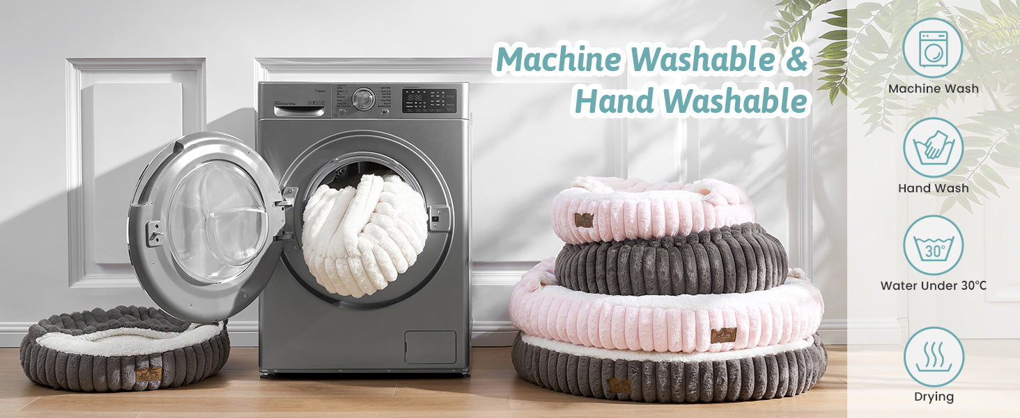 This plush cat bed arrives compressed for easy shipping—simply fluff by hand and allow 24-48 hours to expand. Backed by our lifetime support for quality-related replacements. Please note: Due to its one-piece construction, a large-capacity washer is required for cleaning.